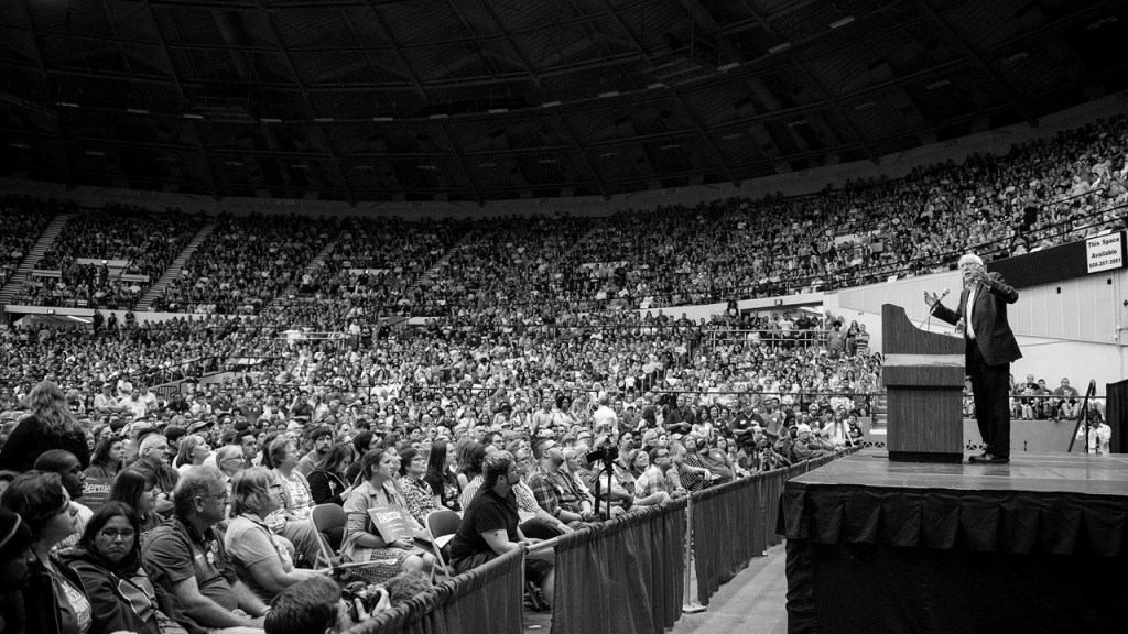 De pie y firme, erguido y emocionado, divisando a sus escuchas desde la tarima del auditorio de la Universidad Estatal de Iowa, se encuentra el candidato de las primarias por el Partido Demócrata de los Estados Unidos, el senador independiente de Vermont Bernie Sanders. Se distingue al político ajustando los últimos detalles de su postura, organizando sus papeles en el atrio y aspirando el aire a ser convertido en las palabras de apertura de su discurso. Se apresta a dirigirse a un extasiado público en su mayoría conformado por estudiantes y en medio de un atronador aplauso generalizado que produce una algarabía contagiosa. La expectativa es palpable y el candidato no decepciona a ningún presente. Su frase de arranque conforma nada menos que un heroico grito de guerra: “¿Están listos para hacer una revolución?” El reto extendido por el político es aceptado por la audiencia, evidenciando su deseo de ingresar a las filas con la irradiación de un atronador e inconfundible: “¡Yeah!”